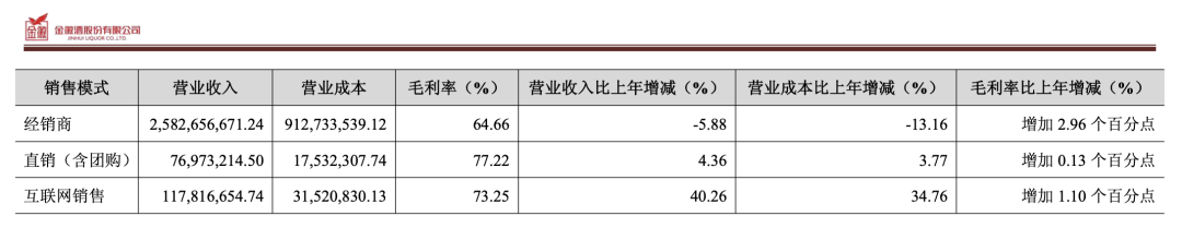 金徽酒的销售模式主要有经销商、直销(含团购)及互联网销售,以经销商为主。从规模分布看,2025年,经销商渠道实现营收占比接近93%,直销渠道实现营收占比2.8%,互联网销售模式实现营收占比4.2%。