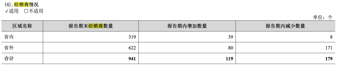 作为主力渠道,经销商模式2025年实现营收25.8亿元,同比下降5.88%;销售量16,946.43千升,同比下降15.23%。这一年也经销商动荡的一年,全年新增119家经销商,退出经销商达到179家,进出抵消后全年净减少了60家。按区域来看,经销商“洗牌”主要是省外市场,全年省外经销商净减少了91家,省内经销商净增加了31家。